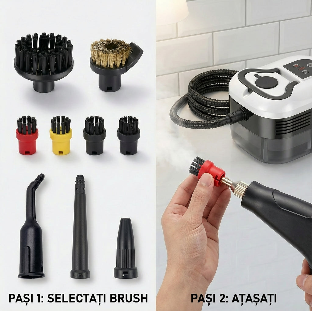 Simply attach the desired brush or nozzle to your JetSteam™ device. Turn on the steam, target the surface, and let the pressure do the work. No chemicals, no scrubbing, no hassle.